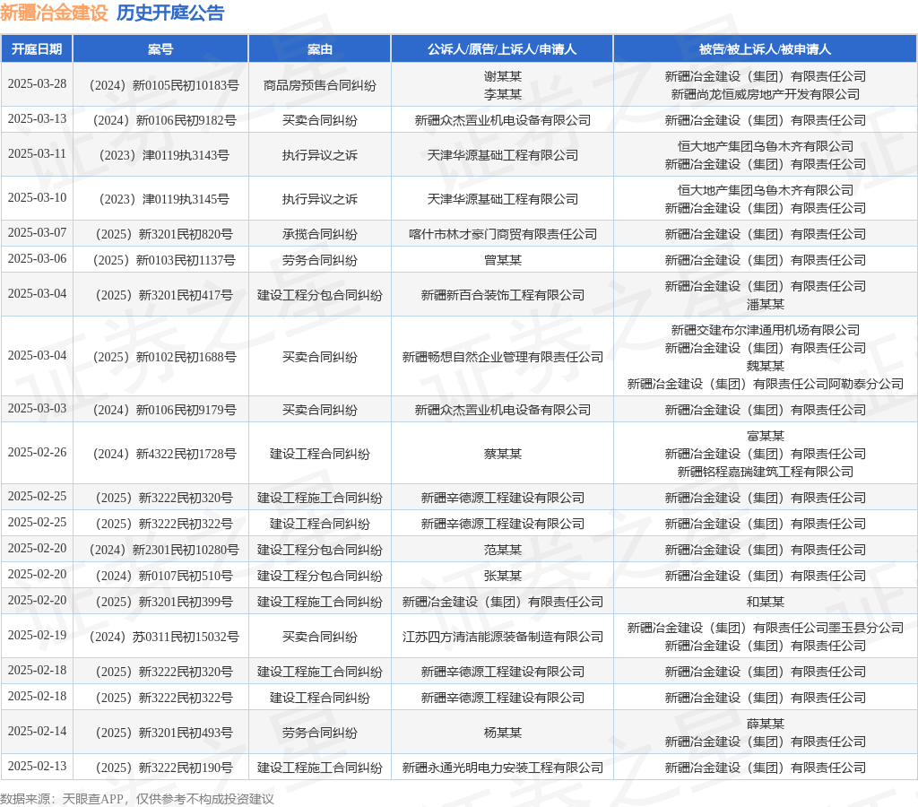 本站消息,根据天眼查APP显示,近日公布了一则新疆冶金建设(集团)有限责任公司作为被告/被上诉人的开庭公告,详细内容如下: